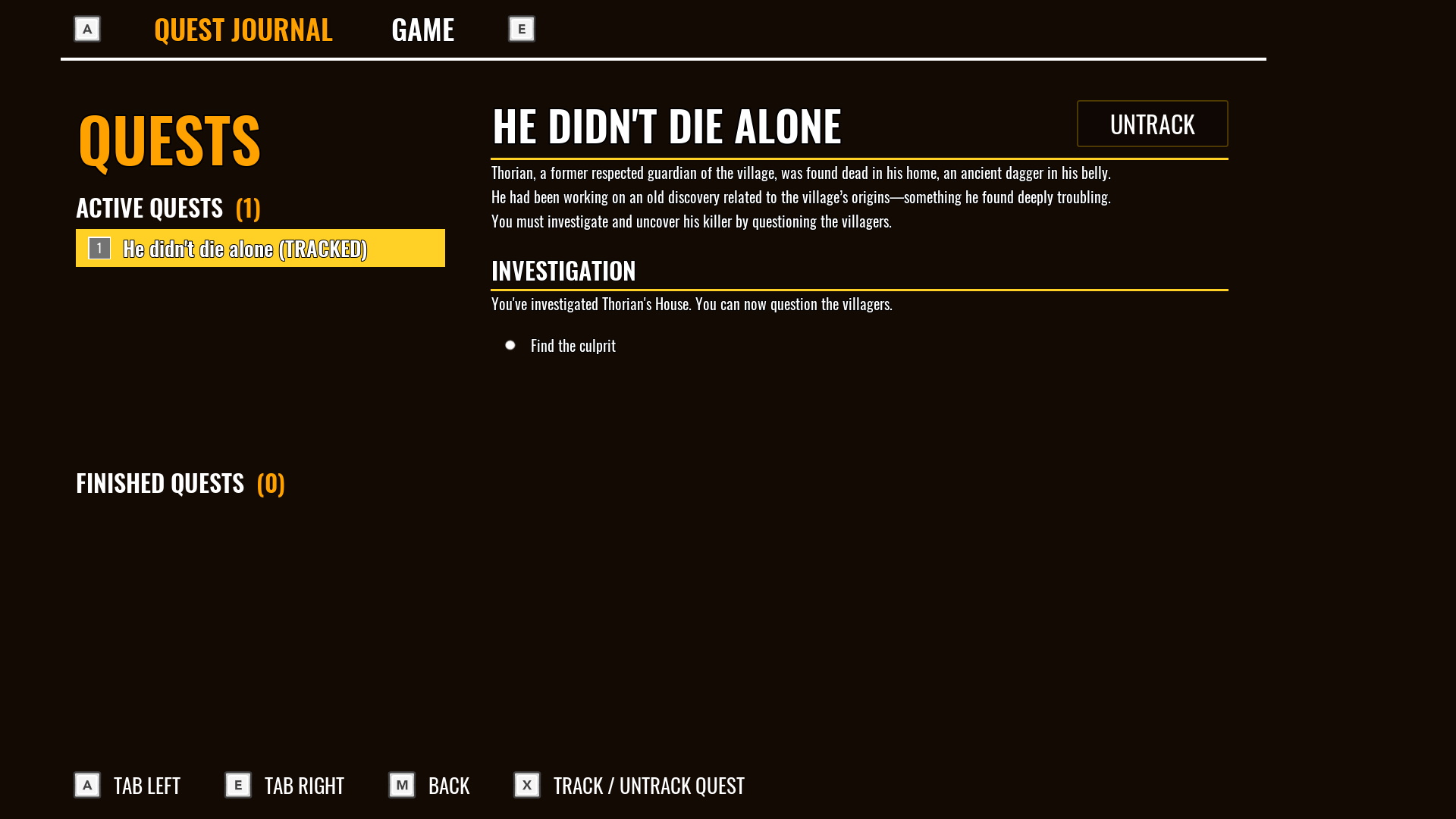 Thorian, a former respected guardian of the village, was found dead in his home, an ancient dagger in his belly. He had been working on an old discovery related to the village’s origins ; something he found deeply troubling. You must investigate and uncover his killer by questioning the villagers.